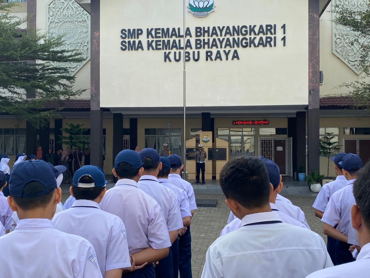Satuan Lalu Lintas (Satlantas) Polres Kubu Raya melaksanakan kegiatan Police Go To School di SMP Kemala Bhayangkari 1 Kecamatan Sungai Raya, Kabupaten Kubu Raya, Selasa (10/2/2026).